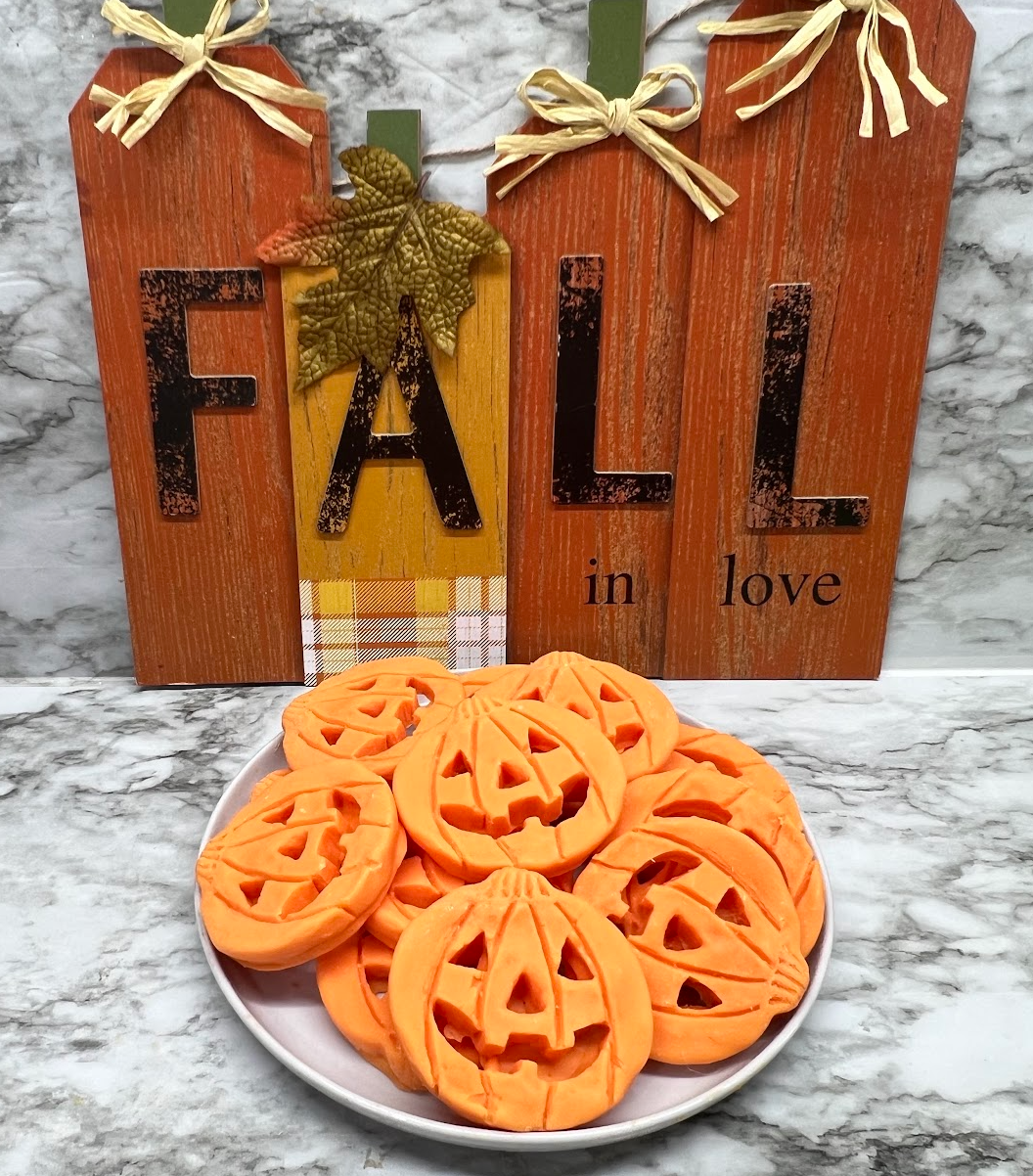 These are all orange and scented in a pumpkin ginger fragrance! There are 5 cookie wax melts per order, for 5.5 oz per container.