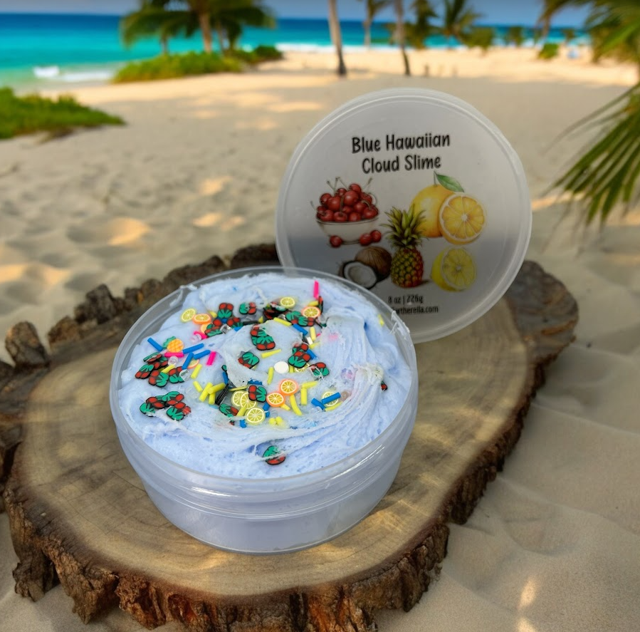 This slime is scented in Blue Hawaiian, a blend of tropical fruits!