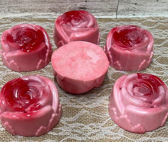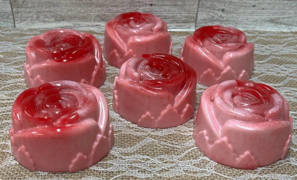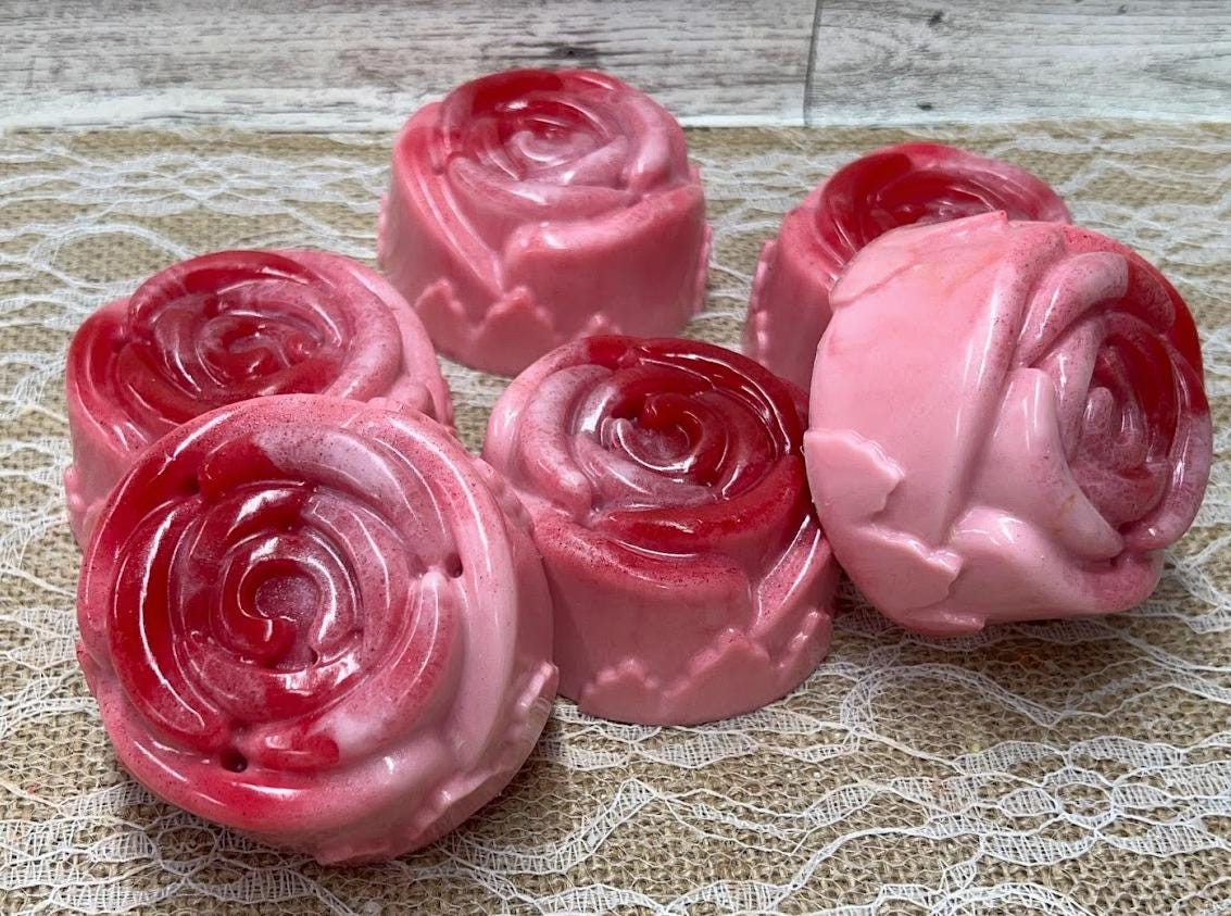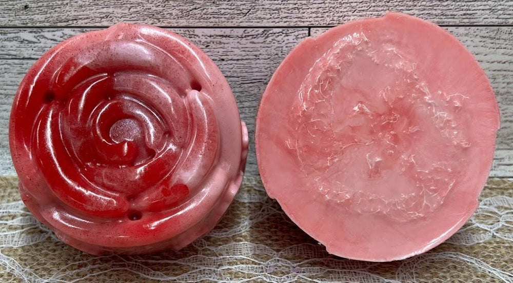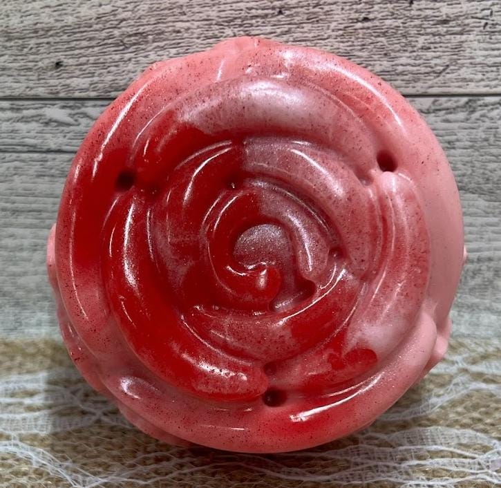 Rose Loofah soap! Scented in a beautiful fresh cut roses fragrance! There is a loofah in each bar for exfoliation! These bars weigh approximately 4 oz.