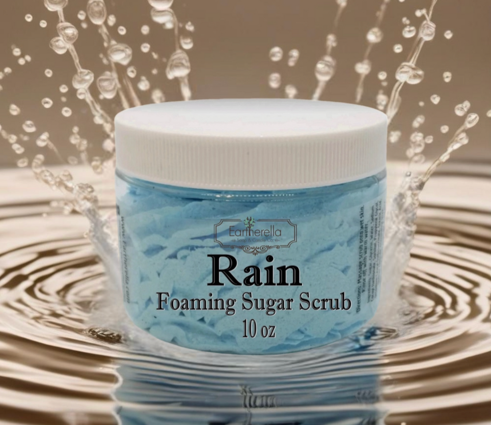 This is a 10 oz jar of our Foaming Sugar Scrubs in the Rain scent.