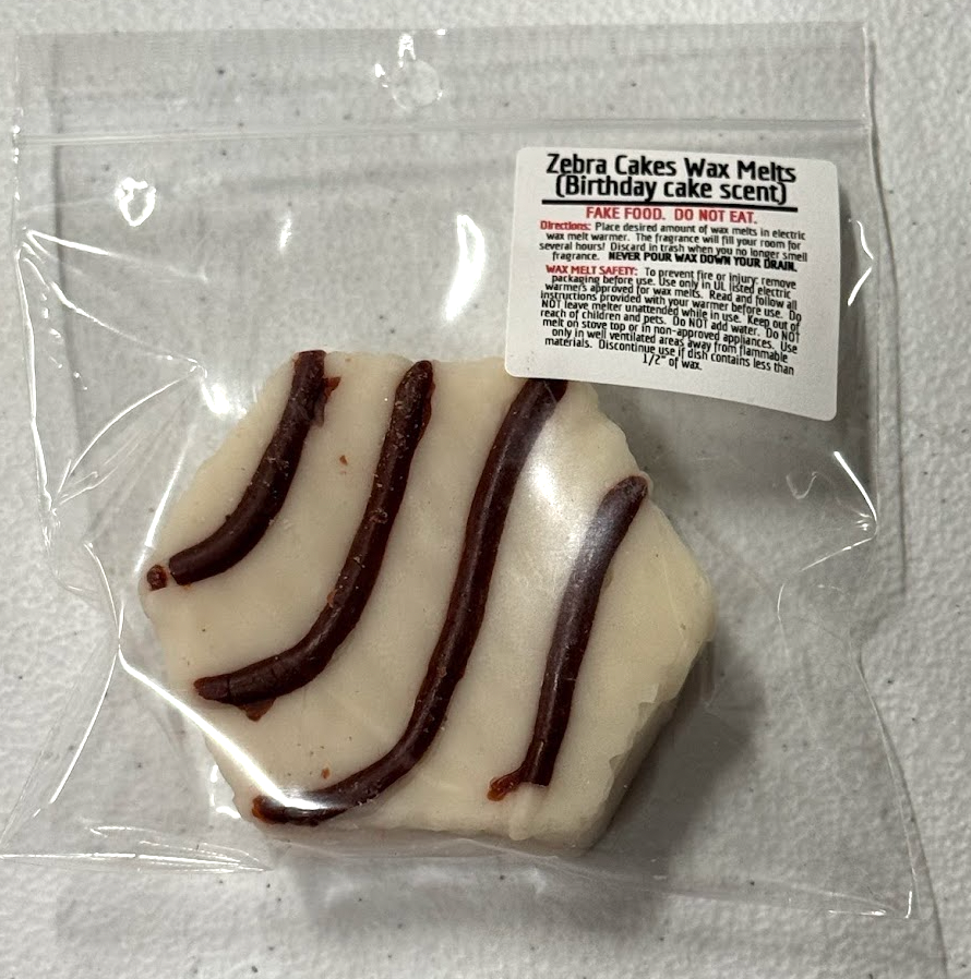This is a Zebra Cake wax melt, scented in birthday cake.